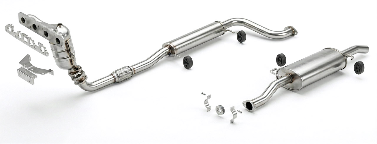 Резонатор сглаживает низкочастотные колебания и уменьшает резкие перепады давления, что способствует более стабильной работе мотора. Глушитель отвечает за основное снижение шума, а катализатор очищает выхлопные газы от вредных веществ. Гофра защищает систему от повреждений, компенсируя вибрации двигателя и нагрузки при движении автомобиля.