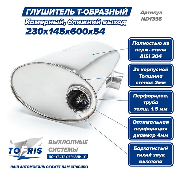 Внутренний узел глушителя выполнен по лабиринтно-камерной схеме, с гильзой на входе и 2-мя стронгерами на выходе, что обеспечивает бархатистую тихую работу выхлопа.