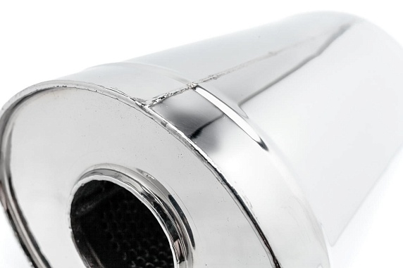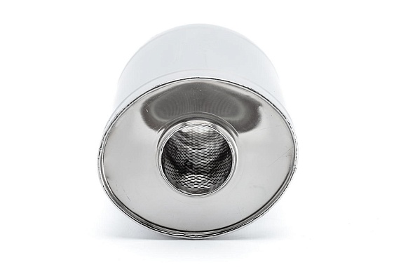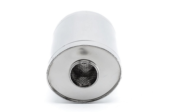 • Высококачественная сталь: Изготовлен из нержавеющей стали AISI 304, устойчивой к коррозии, высоким температурам и механическим повреждениям. Это гарантирует долговечность и надежность глушителя