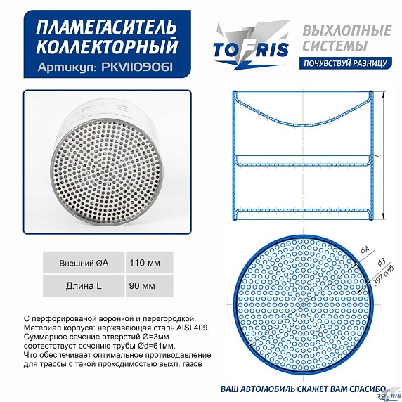 Пропускная способность соответствует диаметру трубы 61 мм., что обеспечивает оптимальное противодавление для трассы с такой проходимостью выхлопных газов.
