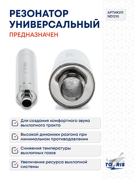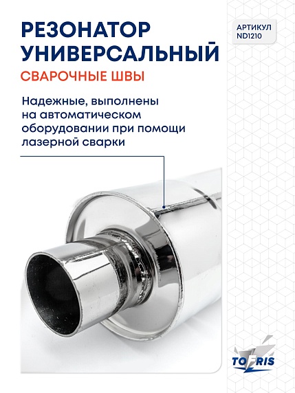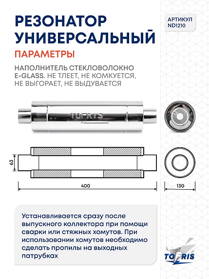Резонатор универсальный Tofris EQ 130*400*63 с р/ж и перегородкой, AISI 304 - отличный выбор для тех, кто ценит качество, надежность и тишину в своем автомобиле!