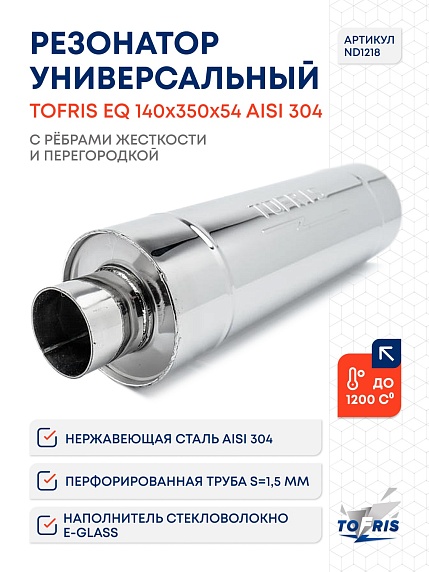 Резонатор универсальный Tofris EQ 140*350*54 с р/ж и перегородкой, AISI 304 - отличный выбор для тех, кто ценит качество, надежность и тишину в своем автомобиле!