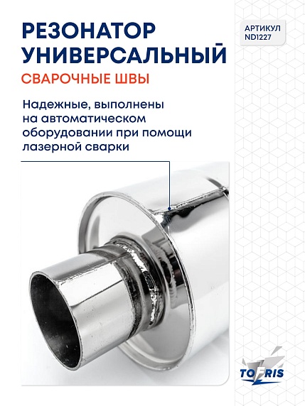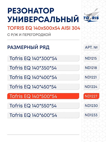 Резонатор универсальный Tofris EQ 140*500*54 с р/ж и перегородкой, AISI 304